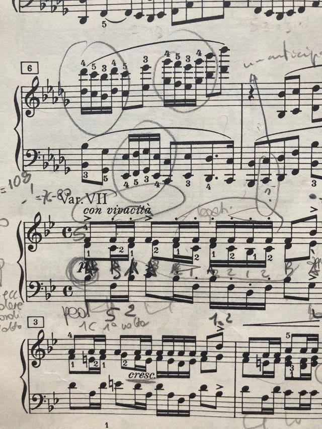 La cosa curiosa è che quale che sia la provenienza linguistica dello spartito, le basi della musica classica portano a utilizzare spesso indicazioni in italiano, più di altre lingue europee. Qui sotto ti mostro un esempio, perchè oggi si vogliono le prove di tutto, e anche perchè, nell'attuale casa in cui vivo, esiste un pianoforte a mezzacoda e una pila di spartiti più disparati: