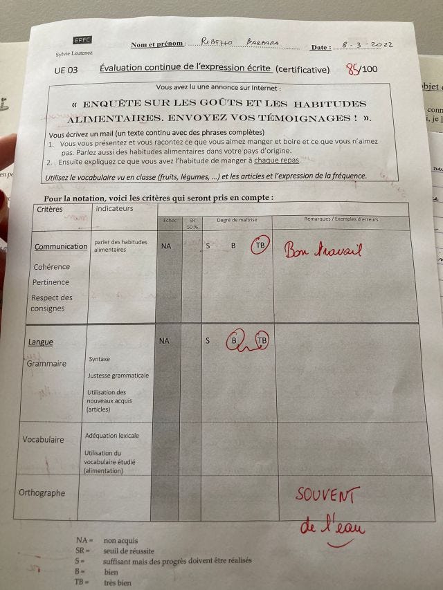 Al mio corso di francese, la valutazione su un testo scritto in classe: 'sovent de l'eau' è praticamente quasi l'unico errore ripetuto più volte, a dimostrare quella verità ineluttabile che bisogna sempre diffidare dagli astemi!